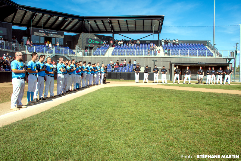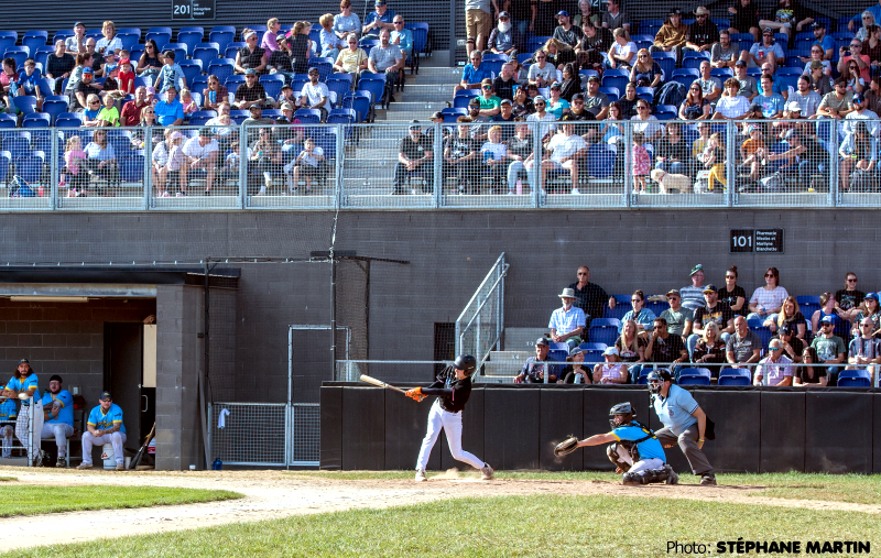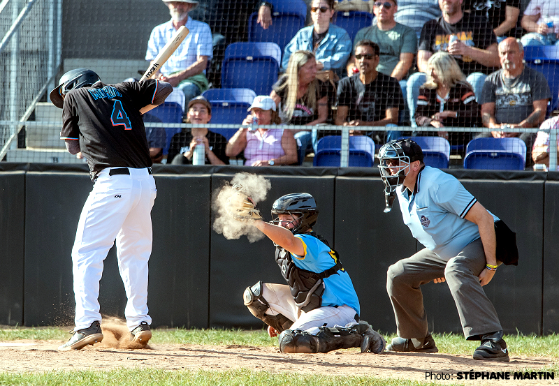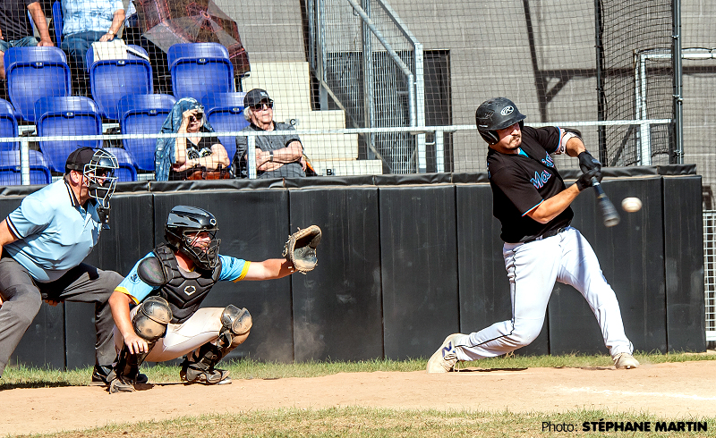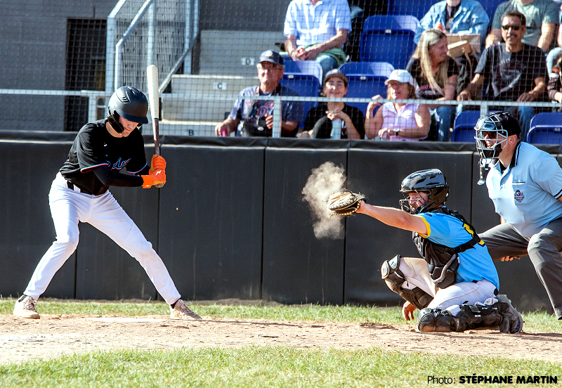 « C’est du vrai baseball, la vraie ambiance, avec une présentation des joueurs sur la ligne, l’interprétation de l’hymne national, un stade plein et même quatre arbitres sur le terrain. C’est rare qu’on puisse vivre ça en senior BB, mais c’est exactement ce qu’on voulait en affrontant Drummondville en finale », commente le joueur-entraîneur des Marlins, Jean-Philippe Morin.