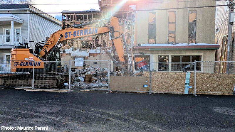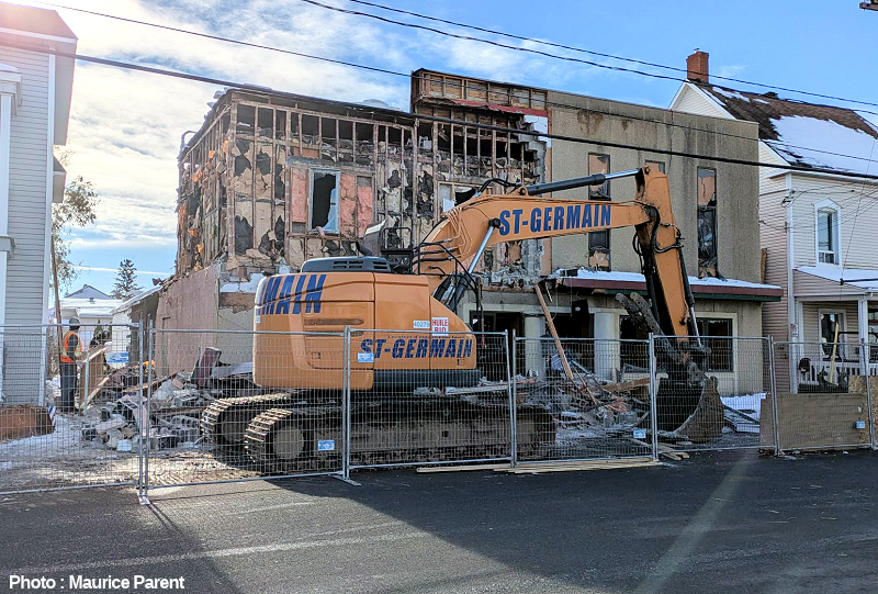 (Stéphane Martin, 19 novembre 2025) – Ravagé par un violent incendie en octobre 2023, l’ancien Salon de Billard l’Effet, situé au 136 de l’avenue de l’Hôtel-Dieu à Sorel-Tracy, est actuellement en cours de démolition.