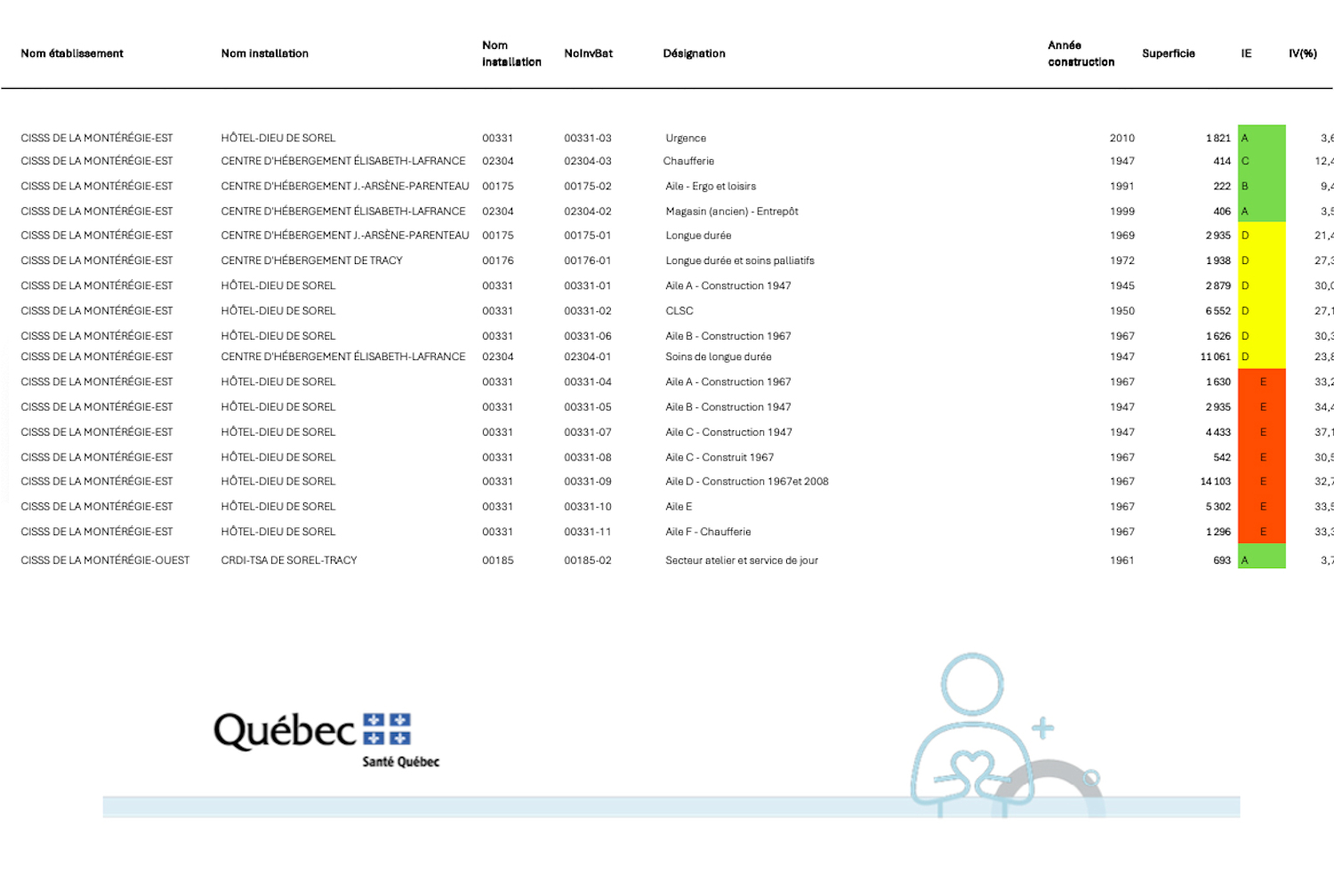 Il est possible de consulter le rapport de Santé Québec sur la mise à jour 2025-2026 concernant la vétusté des infrastructures en CLIQUEZ ICI