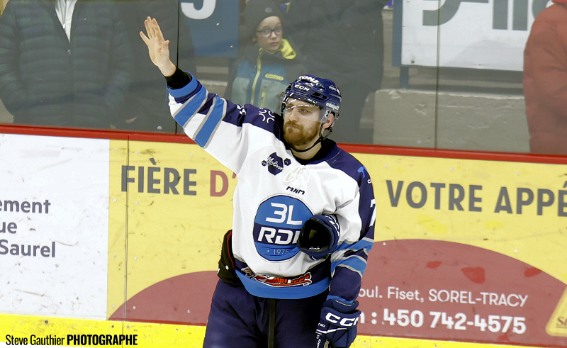 Quoi qu’il en soit, les Éperviers ont remporté hier au Colisée Cardin une éclatante victoire de 5 à 1 sur les 3L de Rivière-du-Loup, une 18e victoire devant 1045 spectateurs, le dernier match local de la saison. L’équipe soreloise y est allée de 39 tirs cadrés, contre 28 pour les hommes de Serge Forcier. Le Capitaine Bouvet-Morissette a connu un soirée de 2 buts, ses 14e et 15e de la saison.