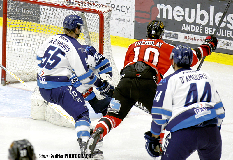 Charles Tremblay a ouvert la marque tôt en première, à 57 secondes, grâce à son 10e but, dans une descente à deux, sur une superbe passe d’Émile Villiard et de Jeffrey Durocher.