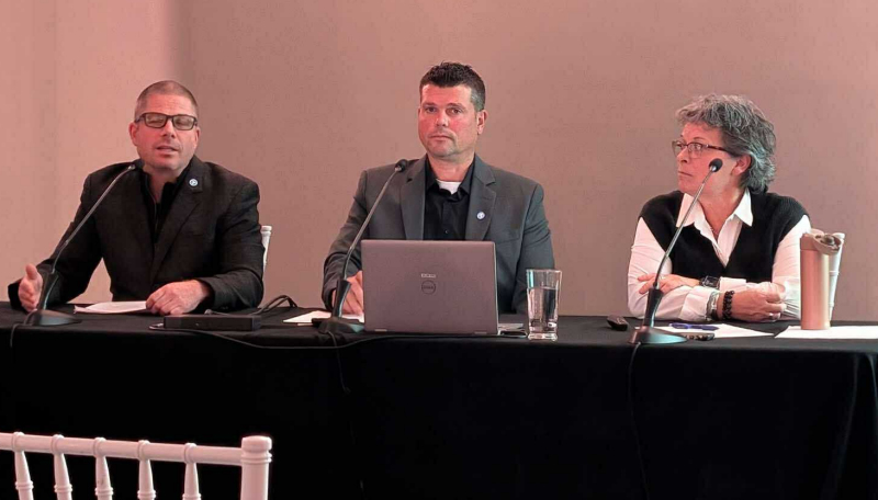 Bruno Verreault, conseiller en communication Société des Traversiers du Québec, Ghislain Rochette, gestionnaire de projets à la STQ et Nancy Roy, gestionnaire de projets à la Société québécoise des infrastructures du Québec (SQI).