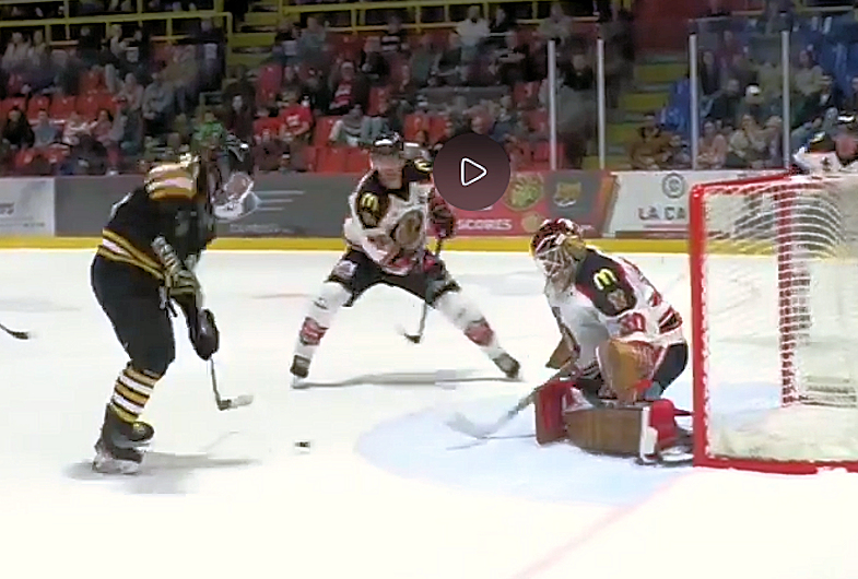 Capture d’image d’un arrêt de Desrosiers face à un but certain d’un joueur du Cool Fm