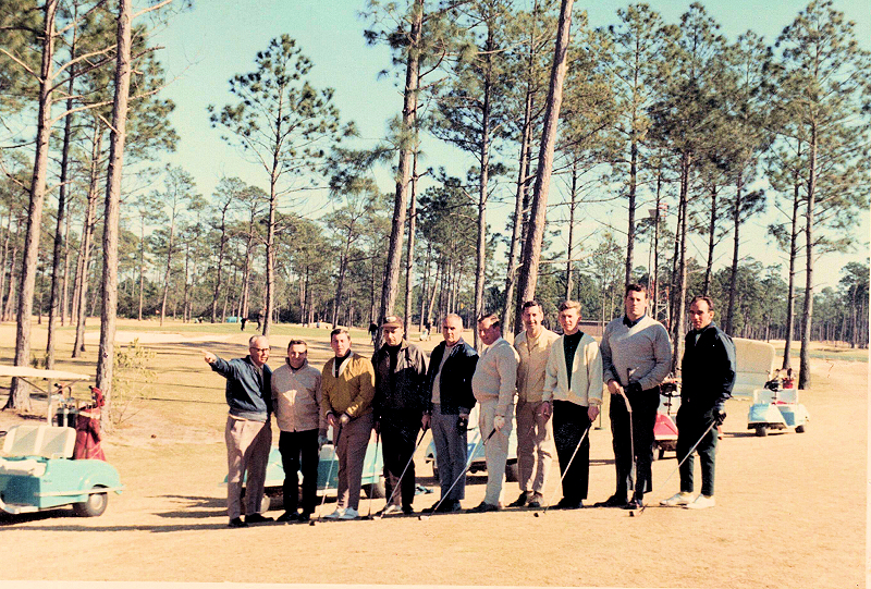 Il y a 60 ans, Gérard Huot, Gaston Demers, Normand Tremblay, Georges Descheneaux, Robert Faithfull, Renaud L’Allier, Raymond Aussant, Jean Desrochers et Raynald – Bill – Guilbault jouaient au golf à Jekill Island.