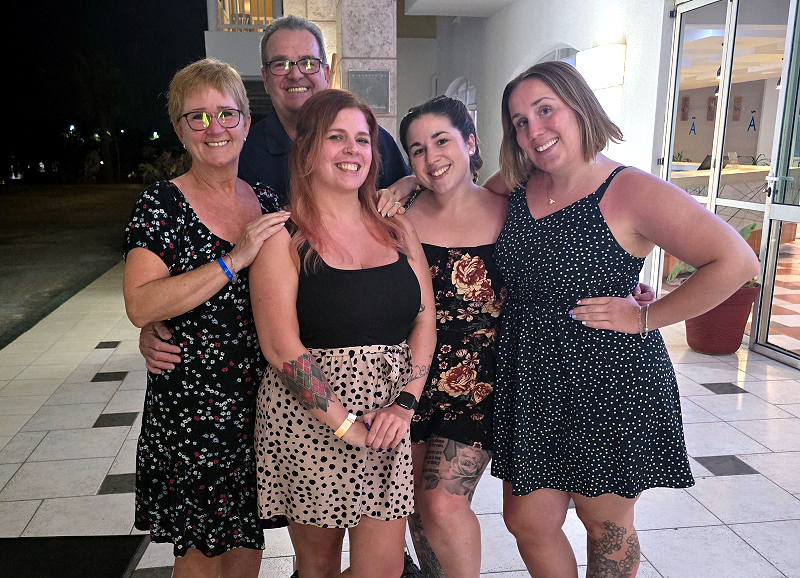Ci-contre Cynthia est au centre, Carole, l’épouse de Christian à sa droite, ses demi–sœurs Mary-Christine et Ann-Julie à sa gauche et derrière tout ce beau monde, Christian lui-même.