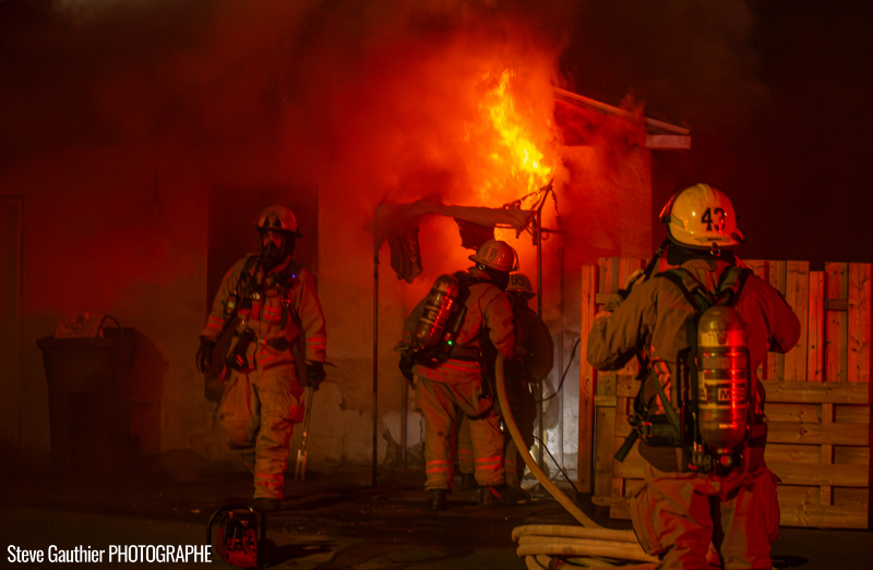 Feu de garage rapidement maîtrisé et sauvetage inusité