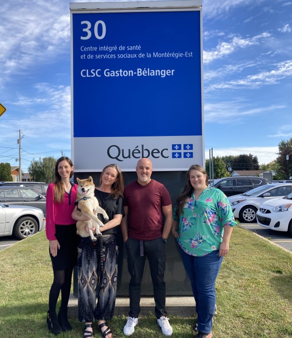 Andrée-Anne Beaudoin, directrice générale de la Fondation Hôtel-Dieu de Sorel – Geneviève Desrosiers, Thérapeute en Relation d’Aide & Zoothérapeute – Steve Gouin, infirmier pour les soins palliatifs à domicile, conseiller clinique en soins palliatifs, musicien et philanthrope – Kristine Jeghers, Bienitude, Formatrice en bien-être, Massothérapeute professionnelle