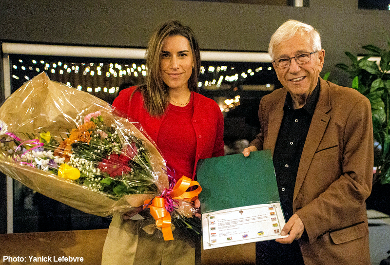 Cynthia Phaneuf qui a reçu des fleurs et une mention de la Chambre des Communes de la part du député Louis Plamondon