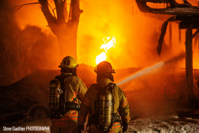 Devant l’ampleur du brasier, la priorité a été de protéger la résidence voisine. « On voulait sauver la maison. Le garage était complètement embrasé, on ne pouvait plus rien faire pour celui-là. La présence de cylindres de propane à l’arrière du bâtiment a également compliqué l’intervention. Il a fallu protéger les cylindres pour prévenir tout risque d’explosion. Ça a occupé tous nos effectifs », a-t-il ajouté.