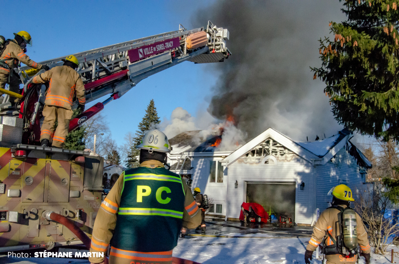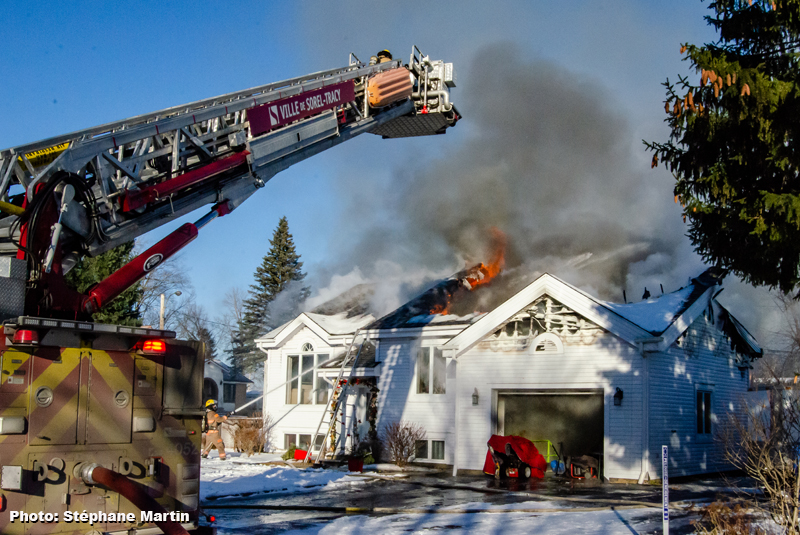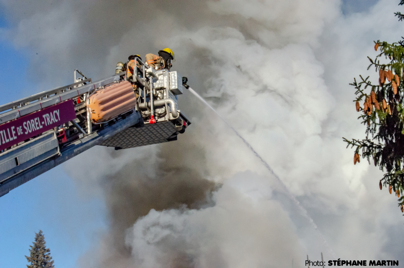 L’appel d’urgence a été logé vers 13 h 56 ce lundi. Du renfort a rapidement été demandé, jusqu’à ce que l’alarme générale soit déclenchée. « Quand les premières équipes sont arrivées sur place, le feu transperçait déjà le toit. Il y avait des flammes et de la fumée qui s’élevaient au-dessus de la maison. Nous avons reçu l’aide de nos collègues de Saint-Ours. En tout, une trentaine de pompiers ont été mobilisés », souligne le directeur par intérim du Service de protection et d’intervention d’urgence de la Ville de Sorel-Tracy, Steeve Groleau.