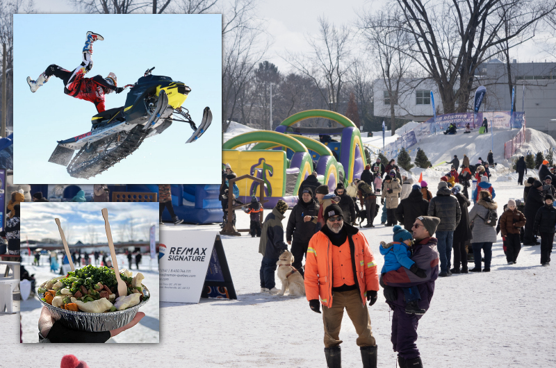 Glissade géante présentée par la Société des traversiers du Québec, jeux gonflables, fermette MaJo, démonstration de bûcherons avec Jérémie Salvas, initiation au tir à l’arc avec le Club Archerot, mascottes, maquillage pour enfants et sculptures sur neige présentées par Lemoine Assurances.