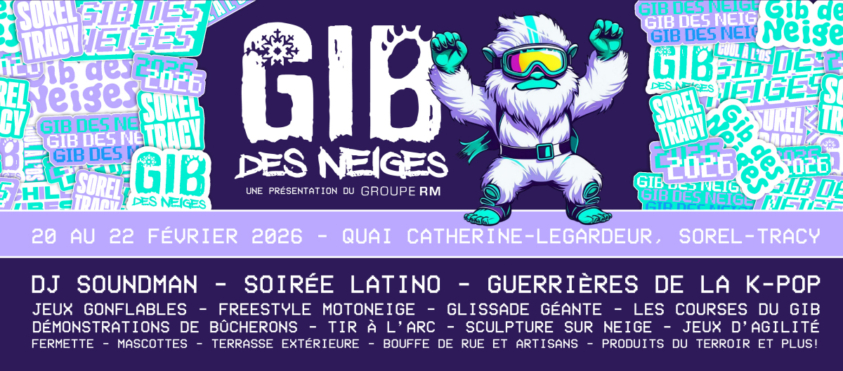 Présenté par le Groupe RM, le Gib des Neiges propose une programmation diversifiée mêlant activités extérieures, spectacles, animations pour enfants et soirées festives, le tout dans une ambiance chaleureuse et rassembleuse en plein cœur de l’hiver sorelois.