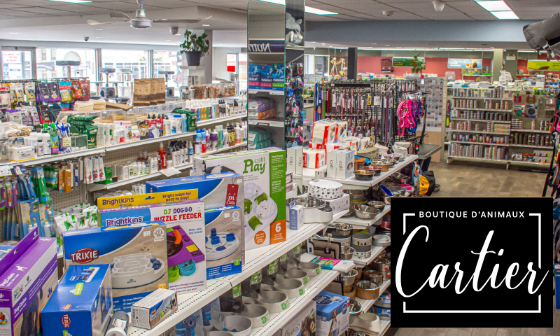 Depuis 1985, la Boutique d’Animaux Cartier est fière de servir la communauté avec passion, conseils personnalisés et produits de qualité pour tous vos compagnons à poils, plumes ou écailles.