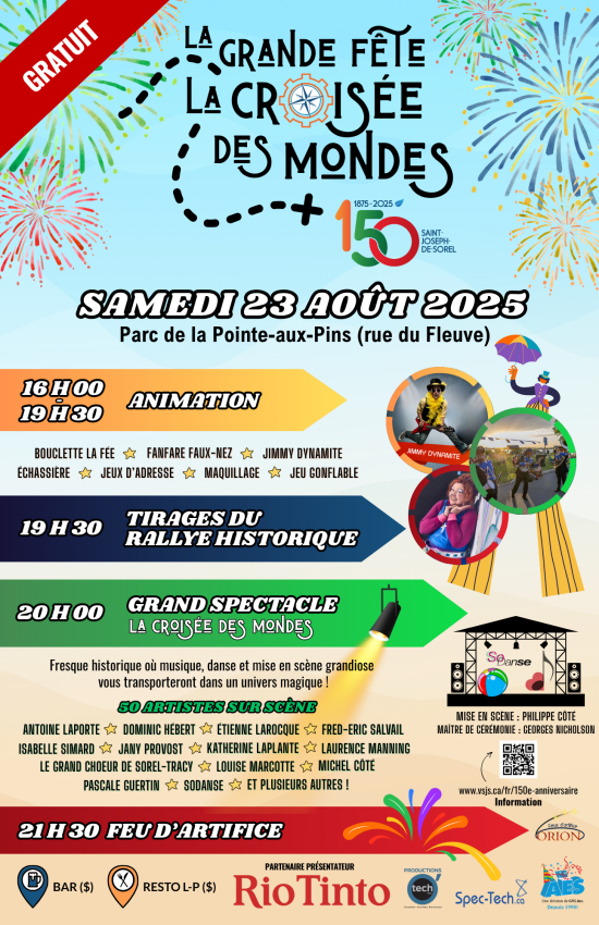 Un événement culturel d’envergure se tiendra le samedi 23 août et qui est gratuit et ouvert à toute la population. La Grande Fête : La Croisée des Mondes