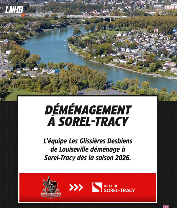 (Rédaction) – La Ligue nationale de hockey balle est fière d’annoncer le déménagement de l’organisation du CHB Glissieres Desbiens de Louiseville – LNHB vers la ville de Sorel-Tracy, à compter du début de la saison 2026.