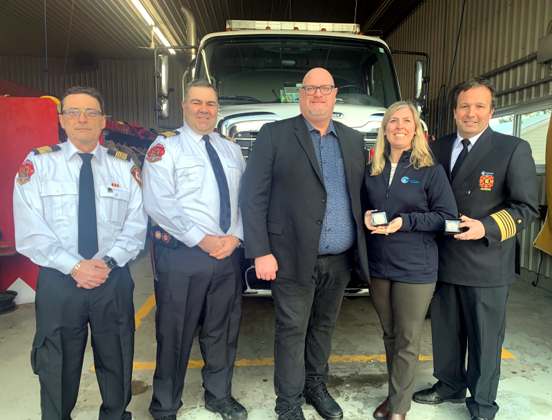Ils ont remis à la mairesse de Contrecœur, Maud Allaire, ainsi qu’au directeur du Service de sécurité incendie de Contrecœur, Bruno Isabelle, un médaillon commémoratif soulignant l’incendie survenu le 17 juillet 2025 à l’église de Saint-Ours. Ce triste événement avait nécessité l’entraide de plusieurs services de sécurité incendie de la région.