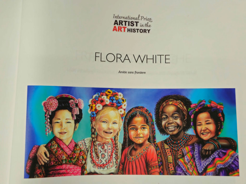 Flora White figure parmi les artistes honorés lors de cette cérémonie pour son œuvre intitulée L’amitié sans frontière, panneau numéro 1. Elle a reçu une plaque honorifique soulignant la portée et la qualité de son travail artistique.