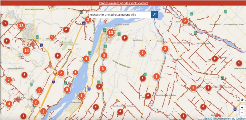 Le vent cause des pannes sur le territoire de la MRC de Pierre-De Saurel