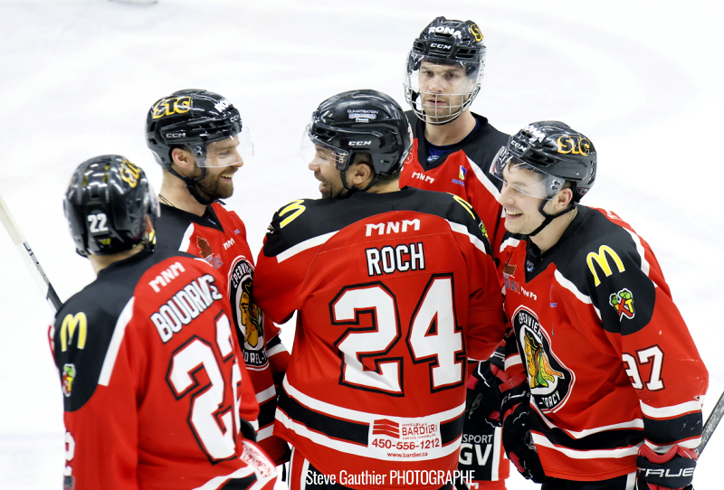 Les visiteurs, pressés par le temps, ont précipité leurs passes et manqué de cohésion en fin de match. Cela a profité à Paquin-Boudreau qui a ajouté un but dans un filet désert. Puis, alors qu’il ne restait que 9 secondes, Boudrias a complété son tour du chapeau également dans une cage vide. Il atteint ainsi le 4e rang des buteurs de la ligue avec 15, seulement deux derrière les meneurs.