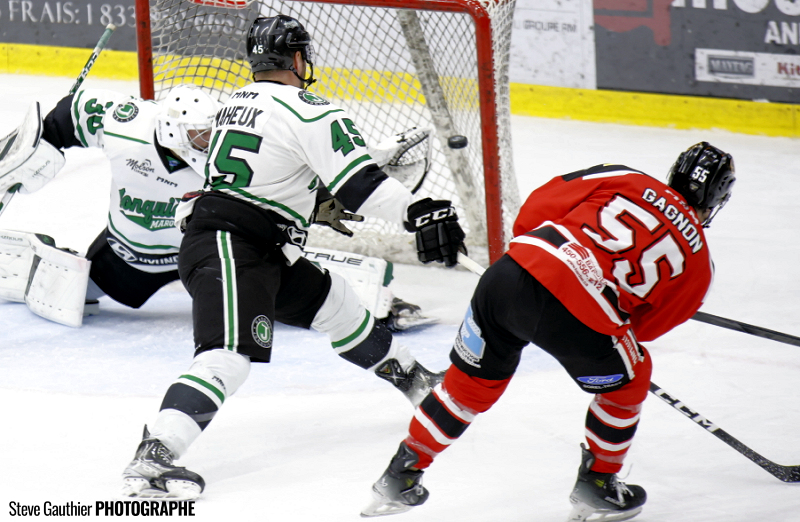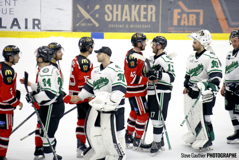 Mais, ce que craignait Christian Deschênes avant les séries est finalement arrivé, les Marquis de Jonquière se sont regroupés derrière Alexandre Tremblay, leur entraineur congédié puis rappelé, et ont joué un match presque parfait autant en attaque qu’en défensive pour éliminer les Champions en titre de la dernière saison au compte de 4 à 2 devant 1154 spectateurs.