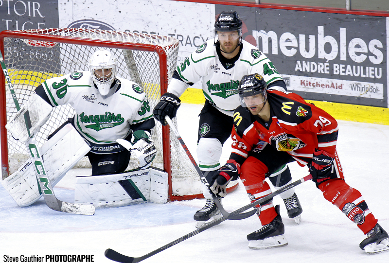 Les « gars de Sorel » en ont même ajouté un 2e au début de la période médiane, le 4e d’Alexandre Fortin sur des aides de Shawn Boudrias et d’Émile Villiard à 3:41. Les Marquis eux, répliquaient à 13:11 avec le 6e de Gabriel Chabot (Marc-Andre Therrien), et le score était encore 2 à 1 Sorel-Tracy.