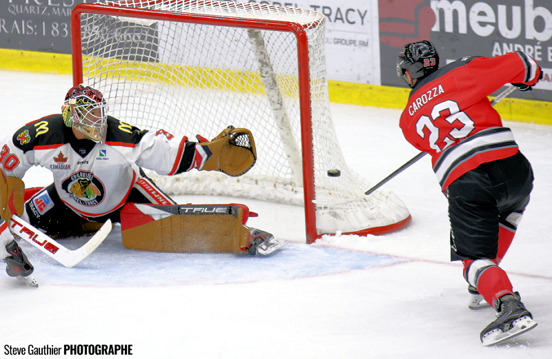 Les Pétroliers ont marqué tôt en première, à 5:26, un but de Xavier Sarrasin (3) (Nathan Lévesque, Émile Poirier) et très franchement ils ont été très solides en attaque tout au long de la rencontre. Les deux gardiens en présence, Philippe Desrosiers pour les Hawks et Carmine-Anthony Pagliarulo pour Laval, se sont livrés un bon duel.