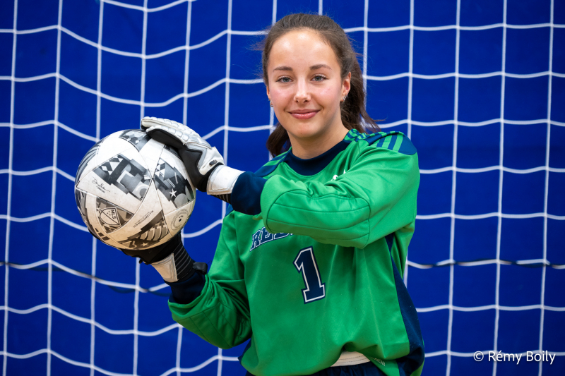 Active en cross-country, gardienne de but en soccer intérieur et désormais en préparation pour un triathlon, elle incarne la polyvalence et la détermination du sport étudiant.