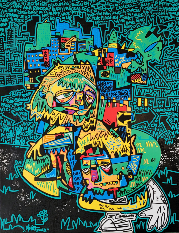 Avec L’alchimie des formes, Martin Cournoyer transforme lignes et entrelacs en un monde étrange peuplé de personnages et de créatures déjantées. Ses gribouillages primitifs au crayon à l’acrylique et à la peinture deviennent matière vivante, oscillant entre abstraction et figuration. L’exposition révèle des dessins et des tableaux à l’énergie brute où couleurs, lignes et formes s’entremêlent pour créer une composition dynamique éclatée.