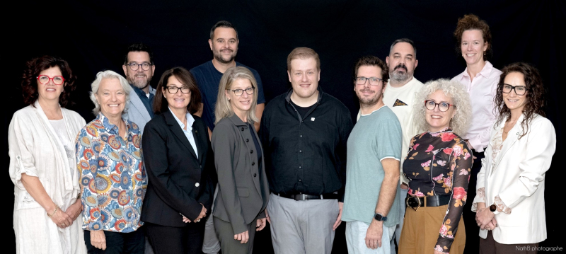 Chantal Cimon, présidente du DÉPS, Sylvie Pouliot, directrice générale de la SADC Pierre-De Saurel, Mario Ledoux, directeur adjoint aux programmes, Diane Dumas, directrice générale et des affaires corporatives, Jean-Philippe Sicard, co-fondateur de Ton Équipier, Catherine Boulanger, directrice des études, Jean-Philippe Hébert, coordonnateur du HUB, Philippe Petit, responsable du Club de relève entrepreneuriale Sorel-Tracy, Sébastien Bibeau, co-fondateur de Ton Équipier, Claude-Maheux Picard, présidente de la SADC Pierre-De Saurel, Mélanie Dulong, conseillère stratégique en développement d’entreprise, Catherine Durand, conseillère en finances personnelles, attitrée à la clientèle jeunesse, à la Caisse Desjardins Pierre-De Saurel. Crédit photo : NathB.
