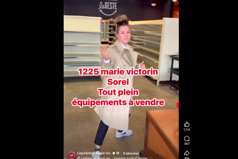 Photo : Capture d’écran page Facebook Liquidation Marie inc.