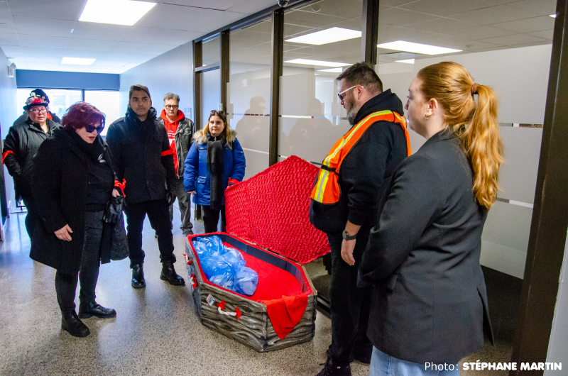 Pour l’événement, des cartes funèbres ont été rédigées afin de mettre en lumière des revendications, des besoins et la réalité du milieu. Elles ont ensuite été déposées dans un cercueil, puis remises au bureau du député de Richelieu, Jean-Bernard Émond.