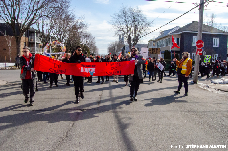 (Stéphane Martin, 30 mars 2026) – Plus de 150 personnes ont pris part à une marche funèbre dans les rues de Sorel-Tracy, ce lundi matin. Organisée dans le cadre du mouvement Le communautaire à boutte, la mobilisation réunissait des organismes de la région ainsi que leurs membres.