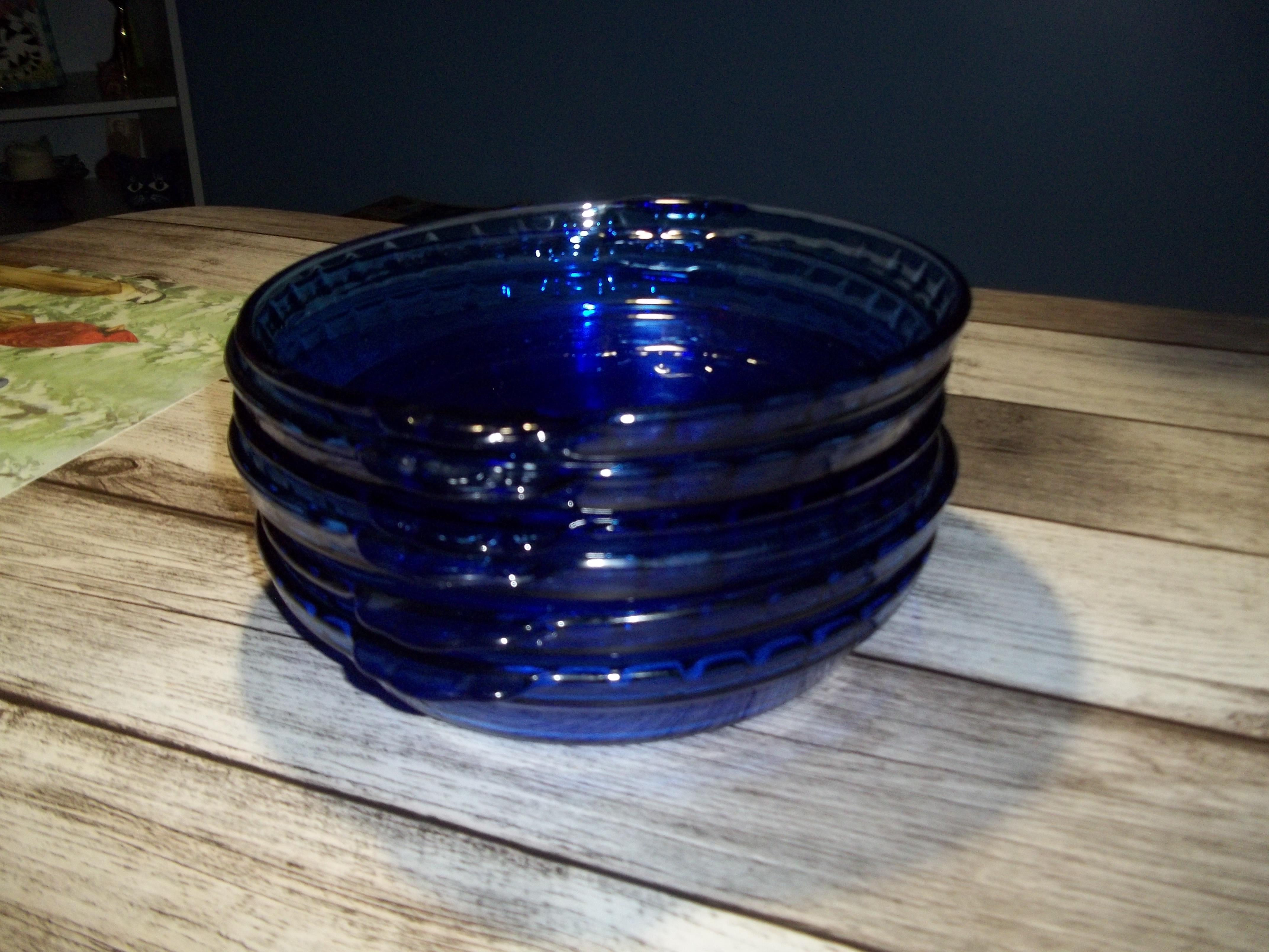 bleue diamètre 10 pouces et le fond 9 pouces impeccable pas de chip