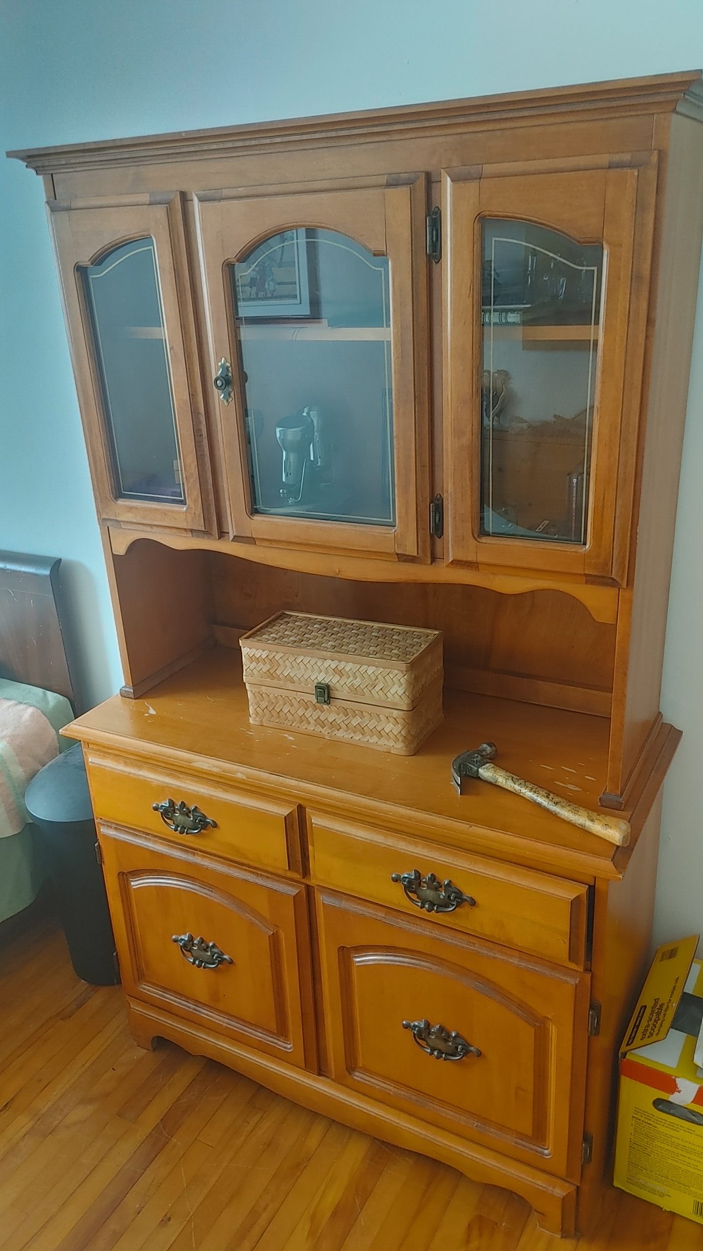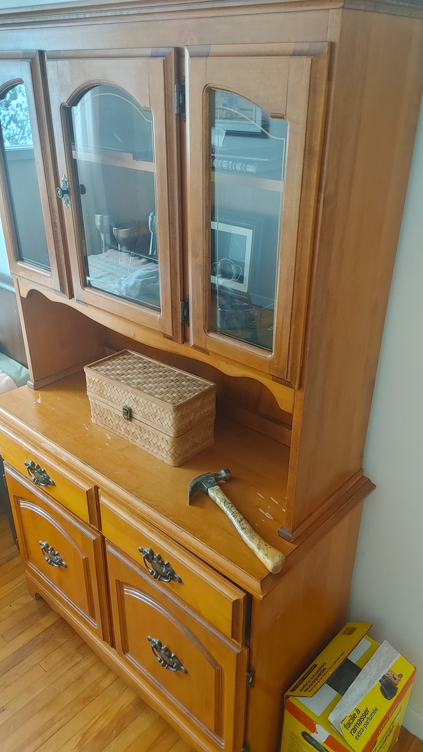 Armoire 2 pièces en très bonne et belle conditions. 2 tiroirs , 2 rangements, une porte au milieu armoire du haut.