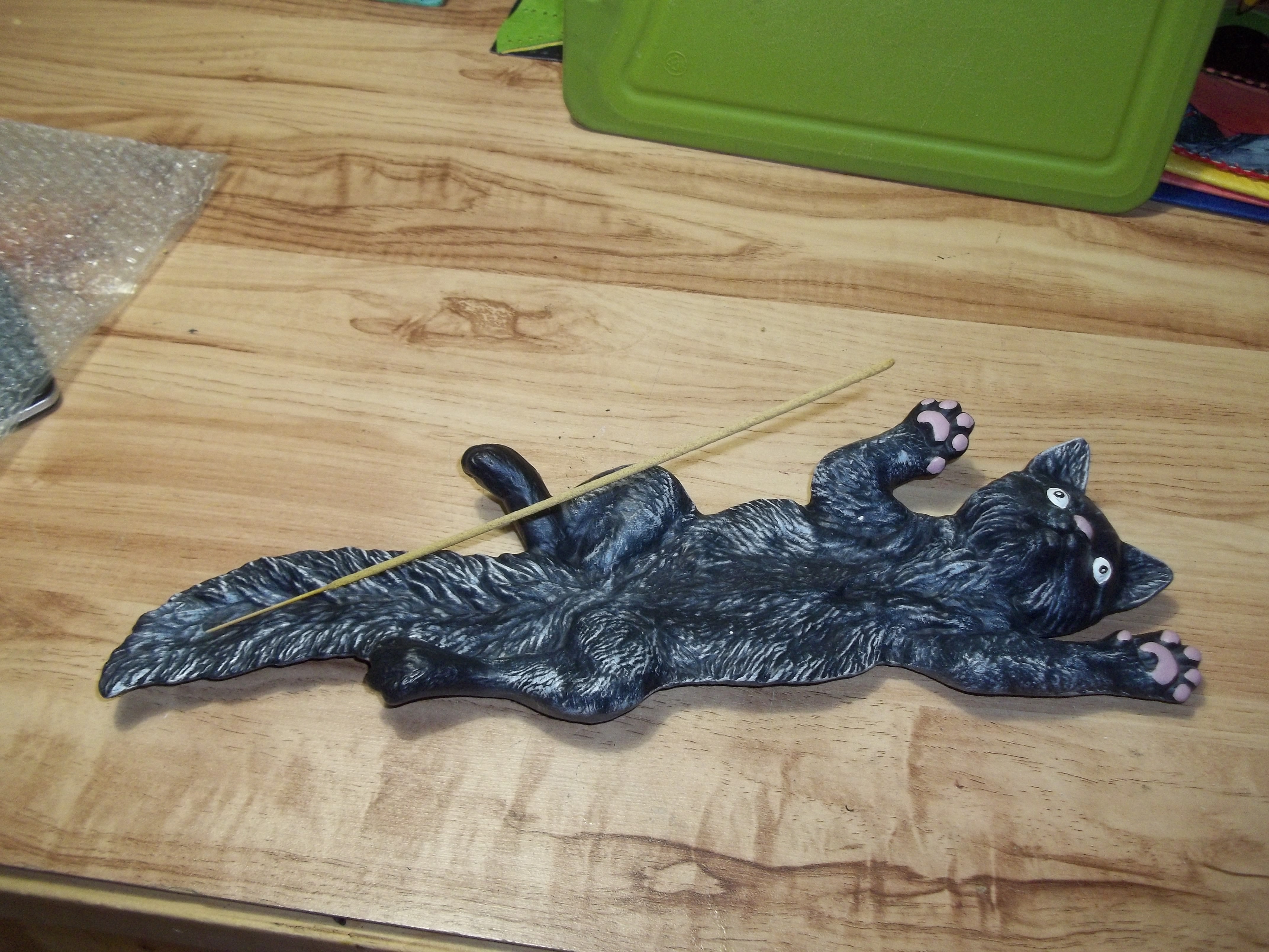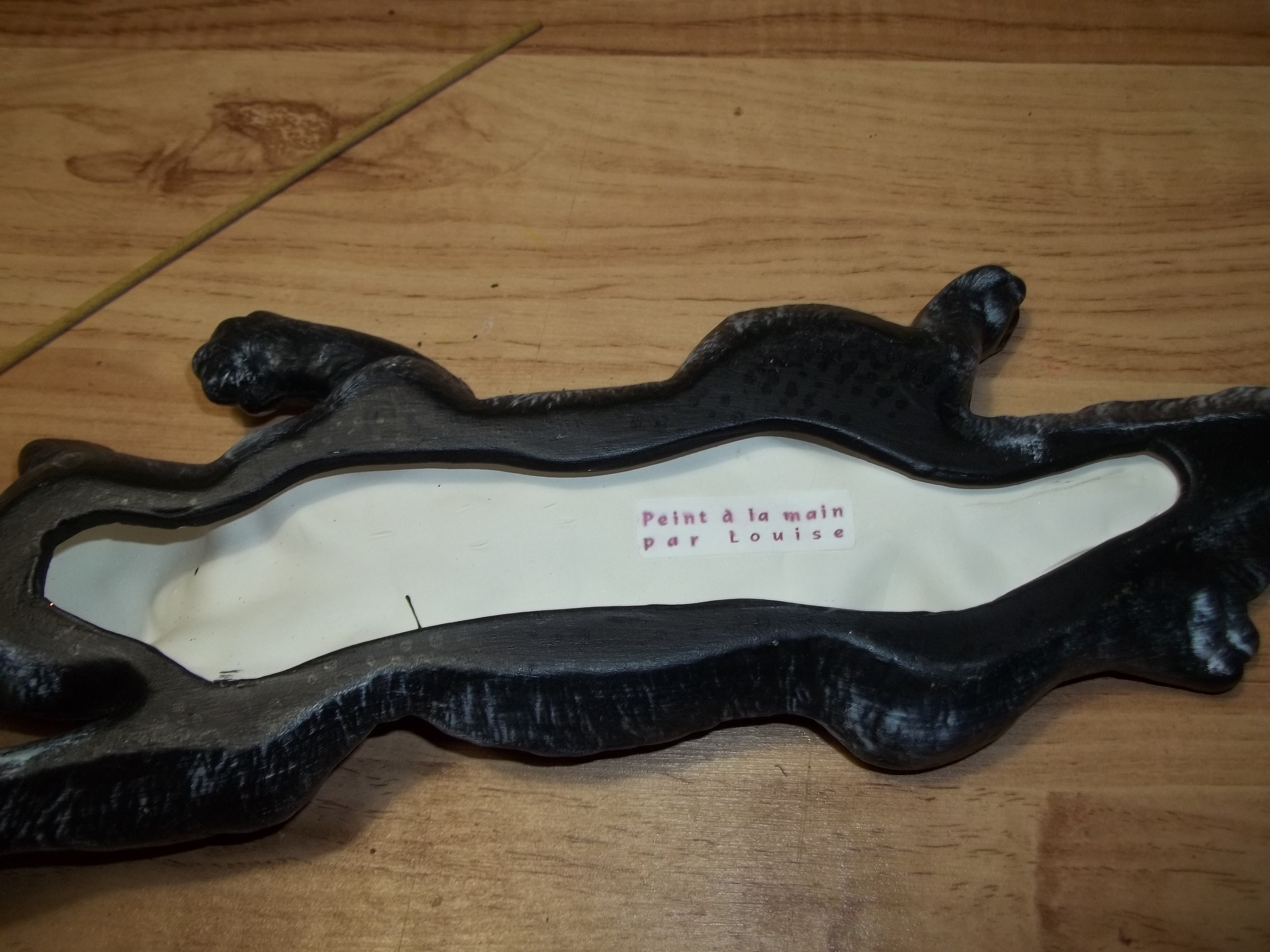 Chat porte encen fait par une artisane et peint a la main