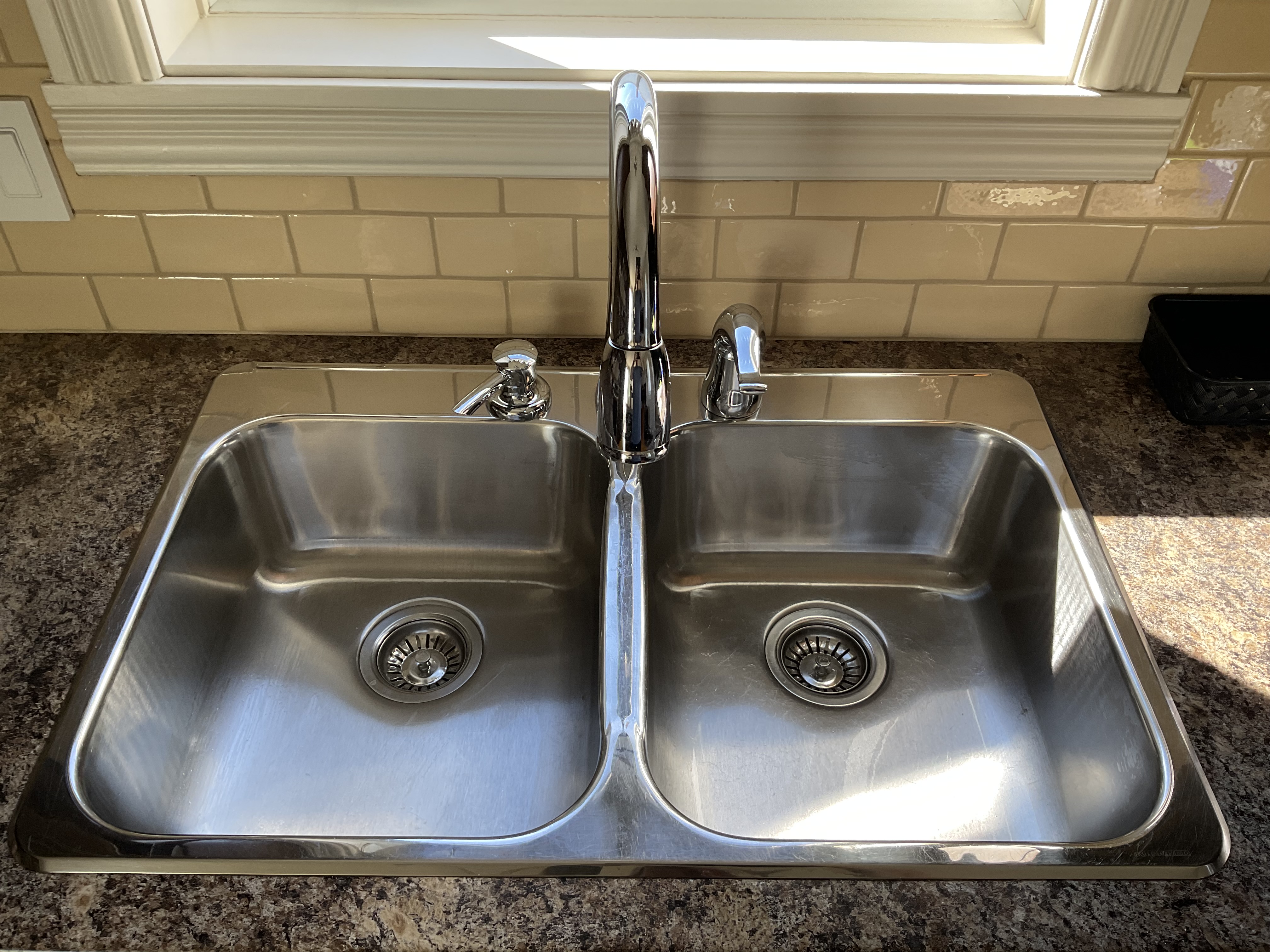 Évier double Kindred et robinet Delta en très bon état.