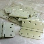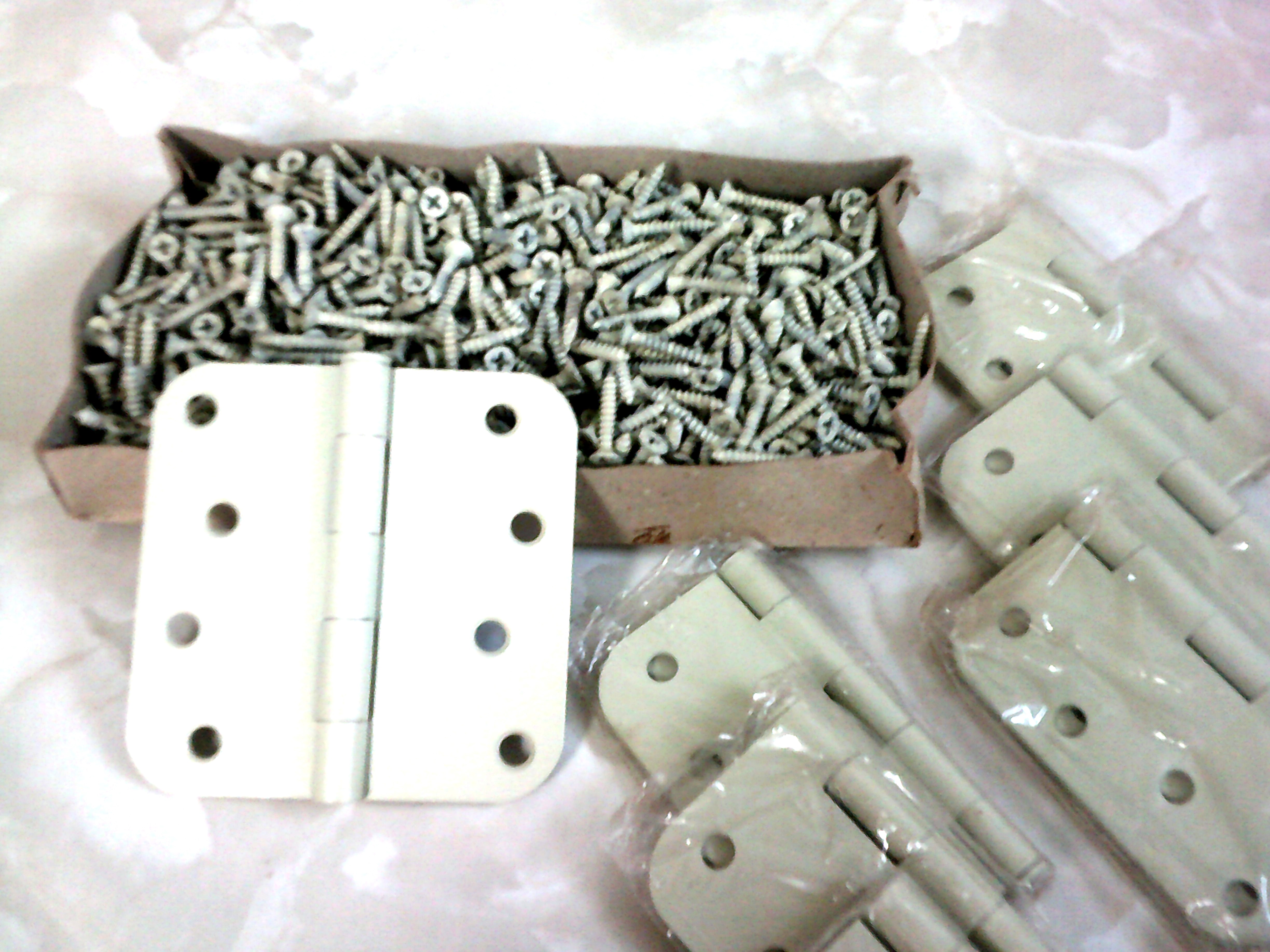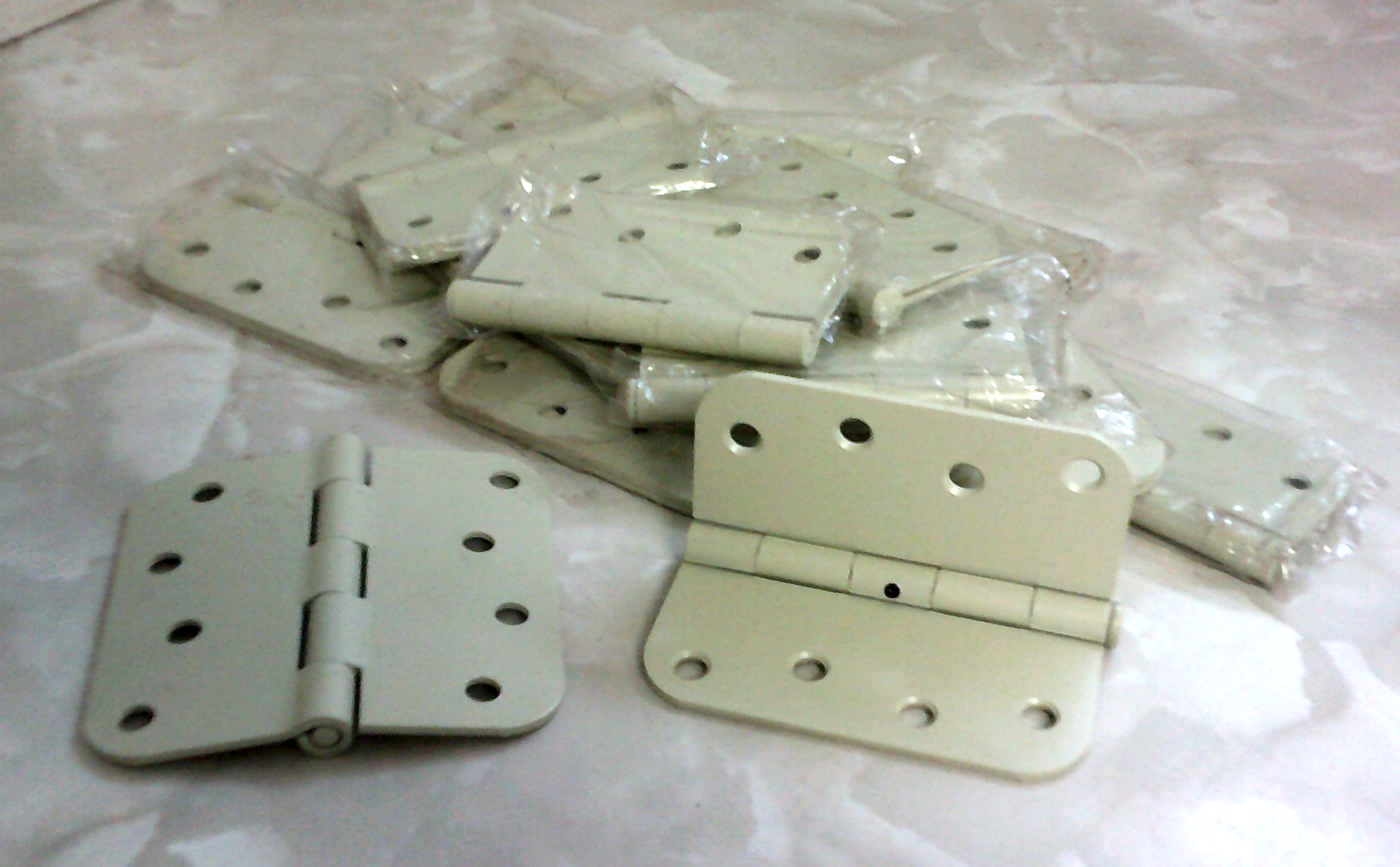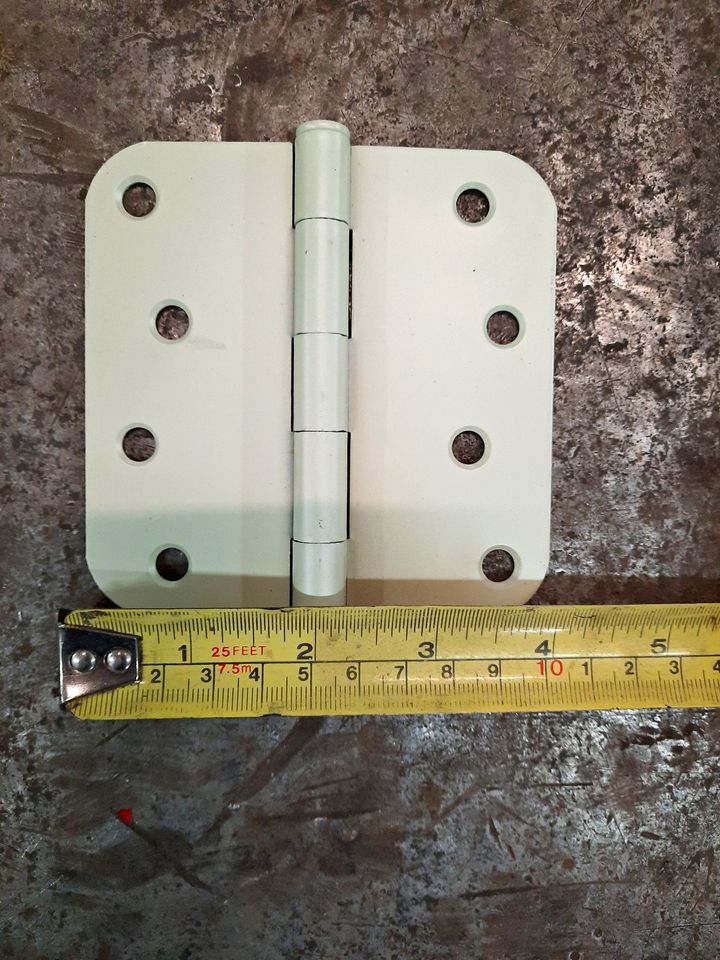 Neufs, pentures de portes de qualité, couleur neutre, en métal, mesure 4 x 4 po, avec 8 trous de fixations, vis à étoile de 1 po de long incluse et de même couleur. Achat balance d’inventaire. Entrepreneurs bienvenus. Boîte fermée de 100 unités pour $60