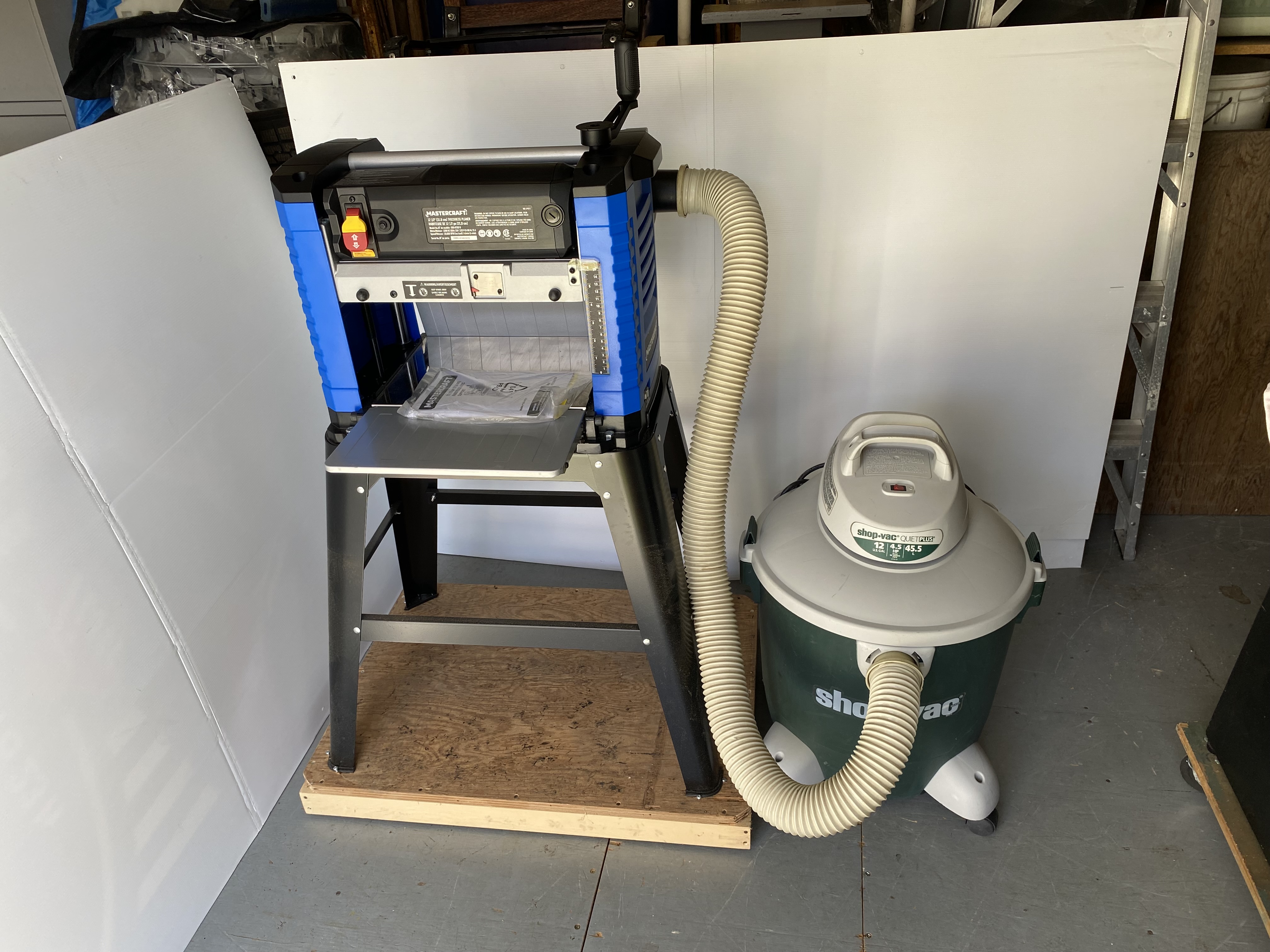Raboteuse (planeur)12 1/2po. couteaux réversible Mastercraft neuf jamais utilisé avec aspirateur d’atelier inclus 45litres 4.5 hp.