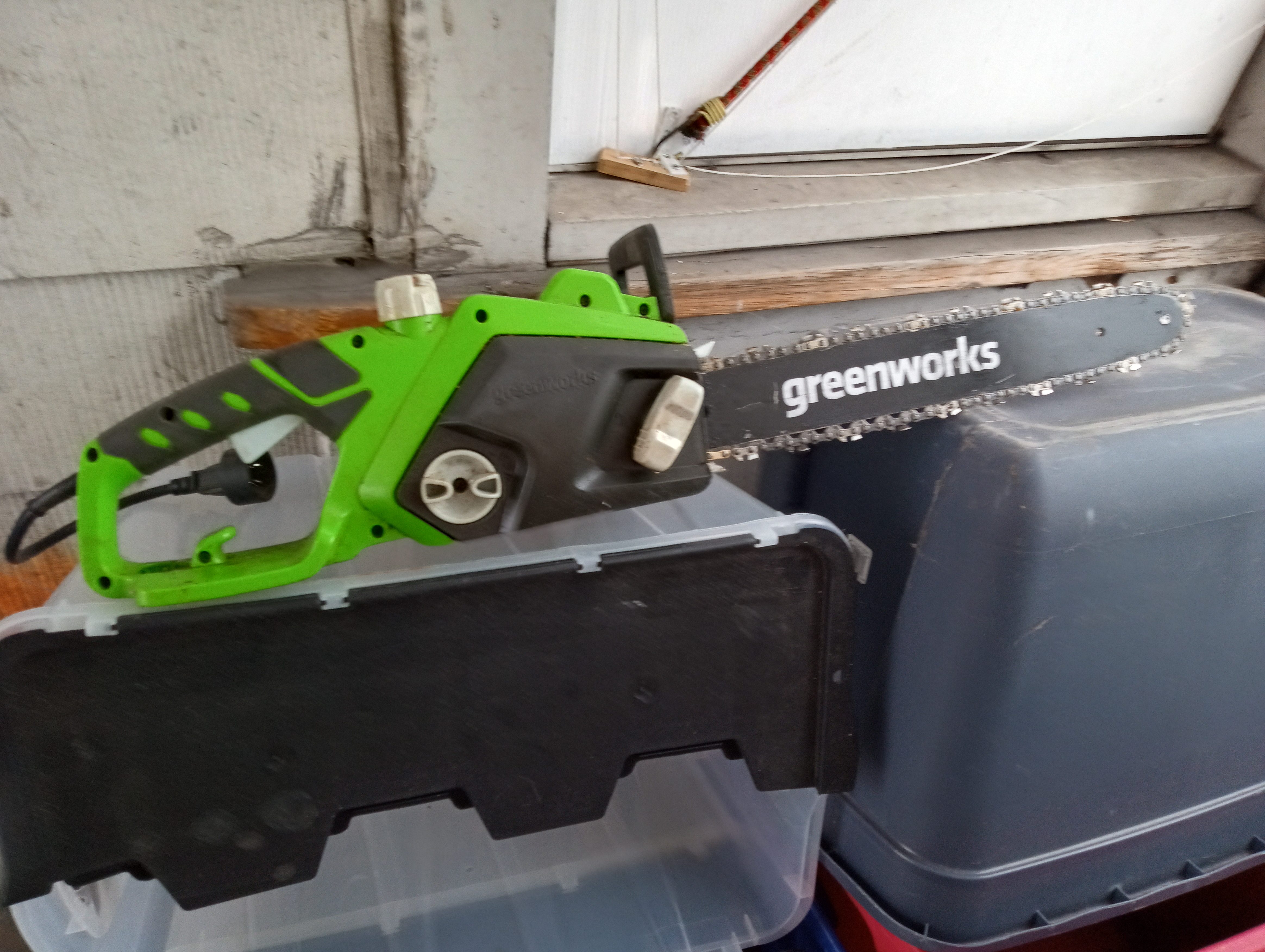 Greenwork électrique a fils avec chaine neuve installé.