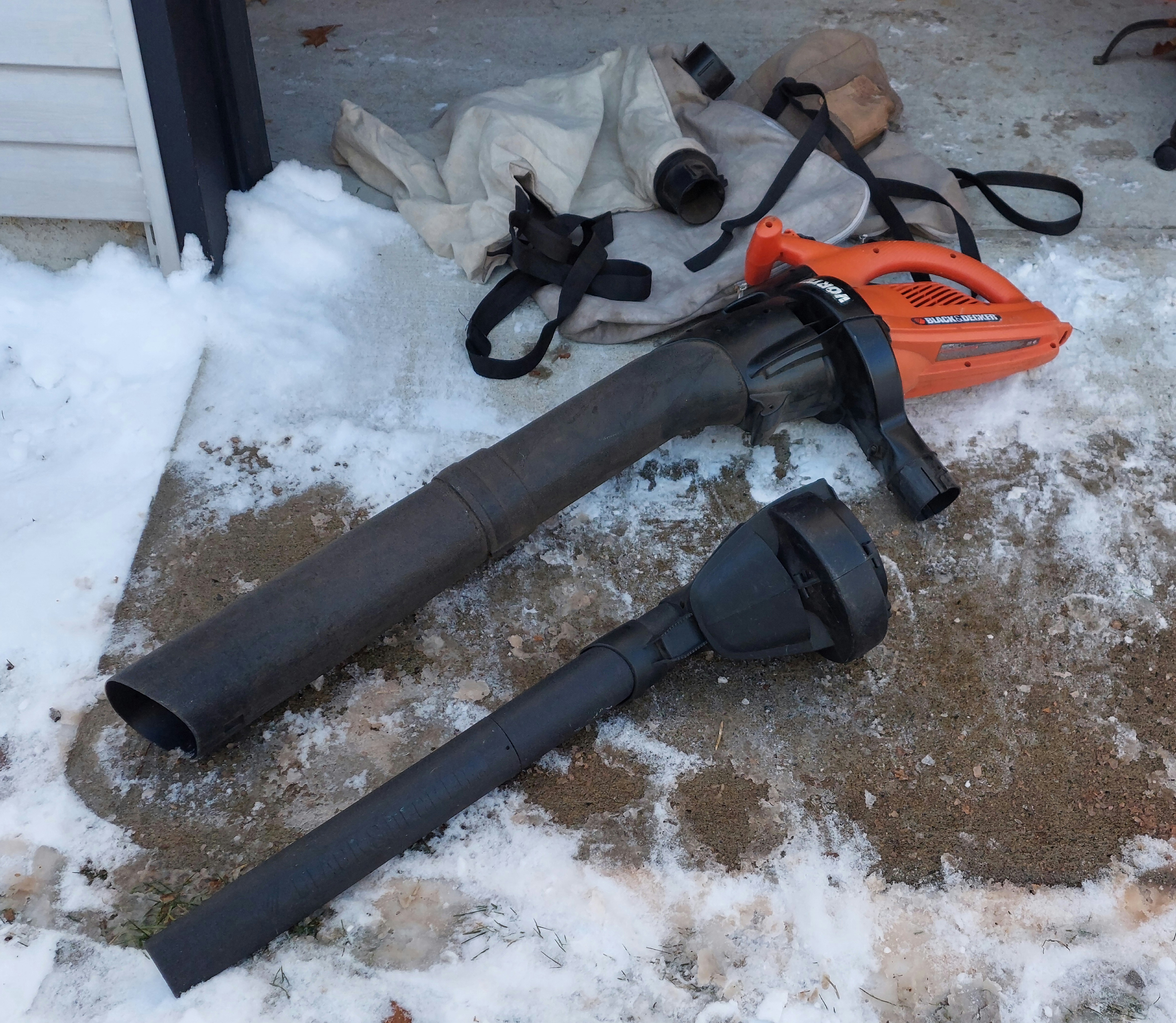 Souffleur et déchiqueteur à feuilles électrique à fil avec trois sac en bon états.