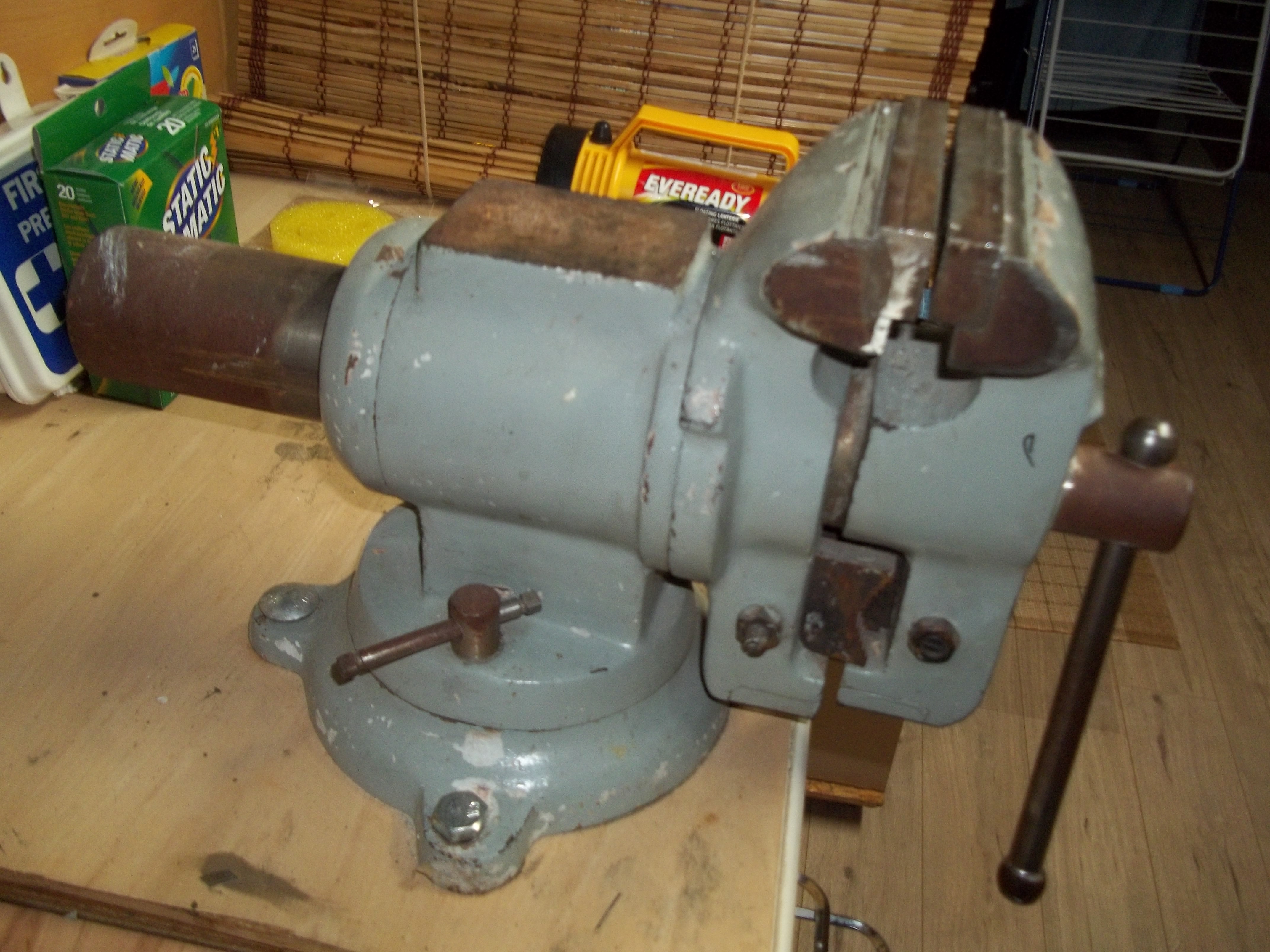 Étau solide et très robuste peu aussi serrer du tuyau voir photos enclume elle n’est pas rouiller c’est sa patine .