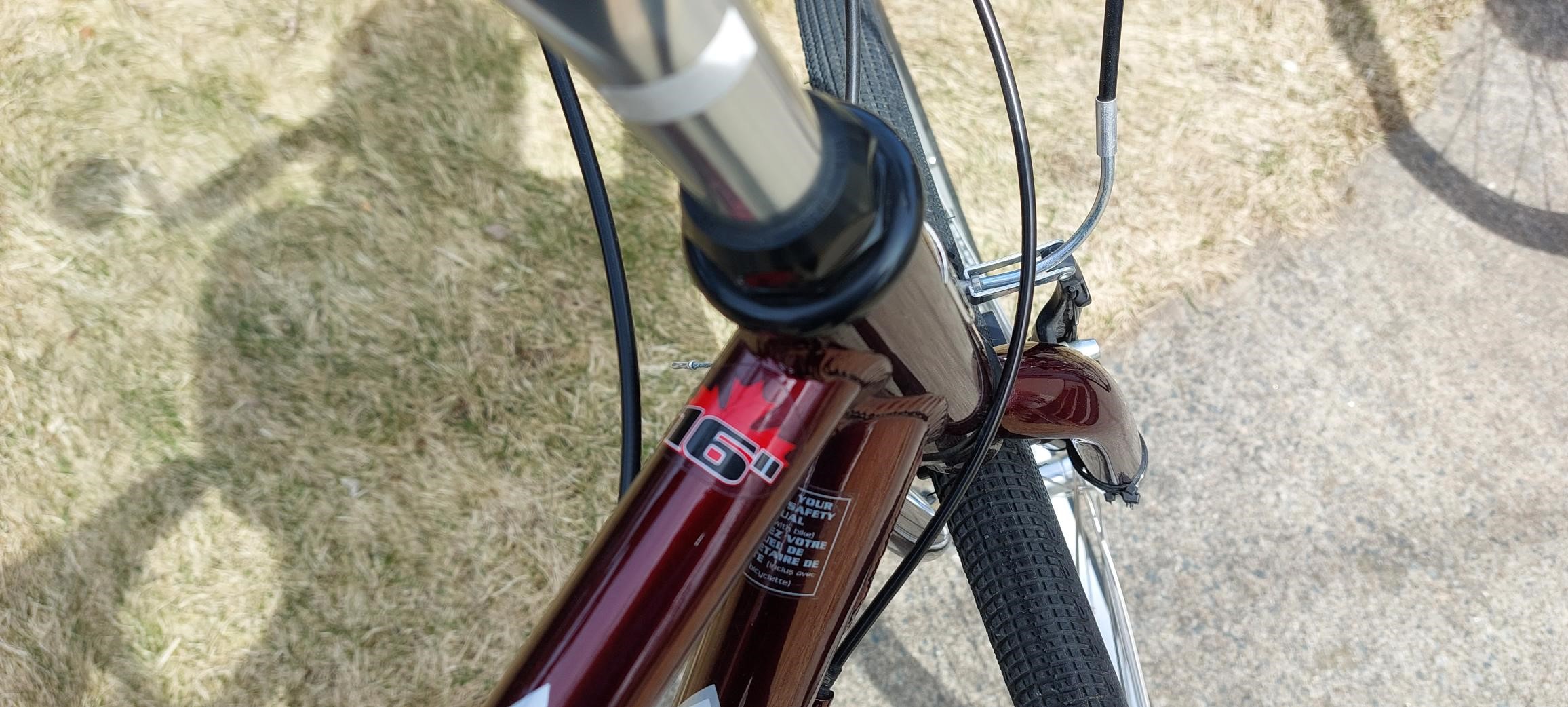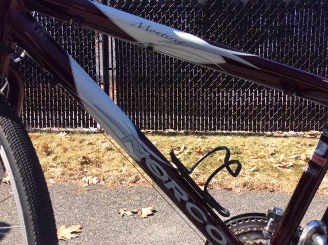 Vélo Norco modèle Monterey, cadre 16 pouces, porte bagage arrière, miroir et béquille.