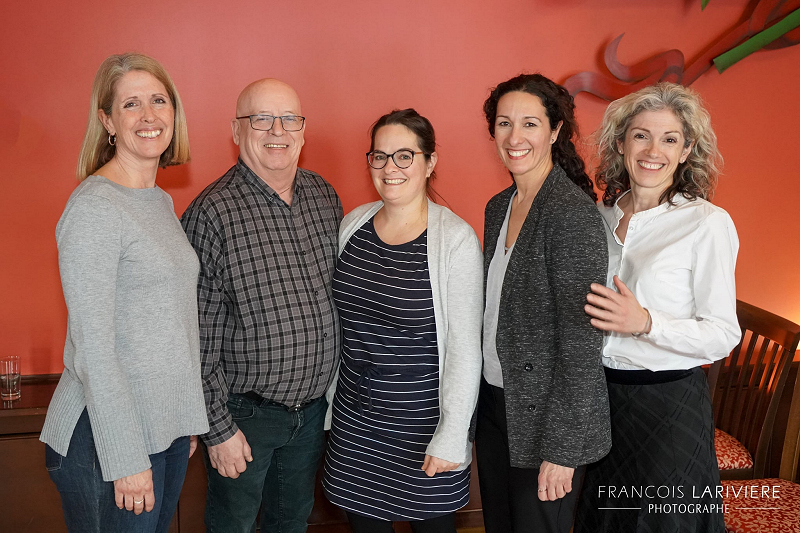 Le photographe Maurice Parent pose en compagnie de responsables du projet à la Ville de Saint-Hyacinthe lors de la présentation de la plateforme numérique sur l’art public.