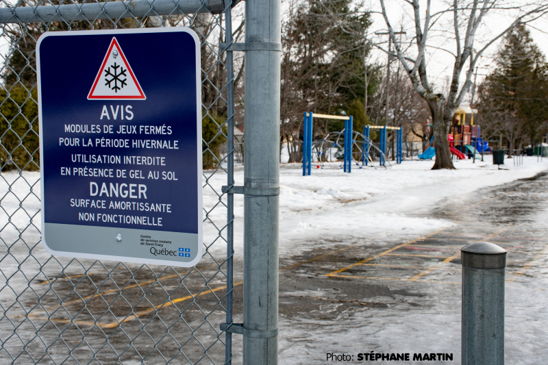 « Les conditions hivernales modifient en effet l’environnement des équipements. Le sol gelé réduit l’absorption des chocs, et la présence de glace ou de neige augmente les risques de glissades et de blessures. Nous demandons aux directions d’école de faire preuve de discernement. Les équipements sont fermés seulement lorsque la surface absorbante n’est plus sécuritaire », ajoute-t-il.