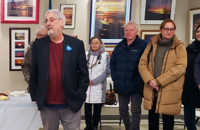 Michel Péloquin, maire de Ste-Anne-de -Sorel à tenu à mentionner que c’est grâce à Rodrigue Shooner si cette municipalité a le centre d’interprétation La maison du marais et le Camping Sainte-Anne de Sorel, propriété de l’Estrien Sylvain Proulx qui veut en faire le plus beau de tous les campings. Ci-contre quelques anciens confrères et amis de Rodrigue lors du vernissage.