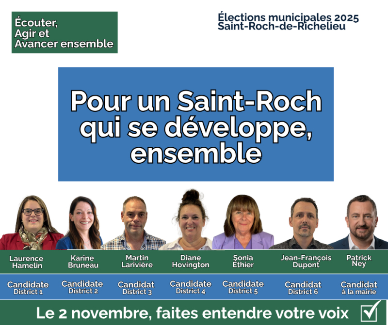 (Communiqué) – Le développement économique et social de notre village passe avant tout par nos gens, nos entreprises et notre vitalité locale. Nous croyons que la relance de Saint-Roch doit s’appuyer sur des bases concrètes : soutenir nos commerces, encourager l’entrepreneuriat local et créer un environnement favorable à l’investissement, tout en gardant notre dimension humaine.
