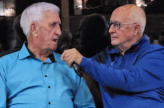 4.Lors du 41e gala du Panthéon des Sports Sorel–Tracy, Gilles Péloquin a trouvé une formule pour faire connaître les personnes intronisées qui ne voulaient pas se présenter elles-mêmes. On reconnait ici Gérald -Curly- Pontbriand interrogé par Gilles sur un hot seat.
