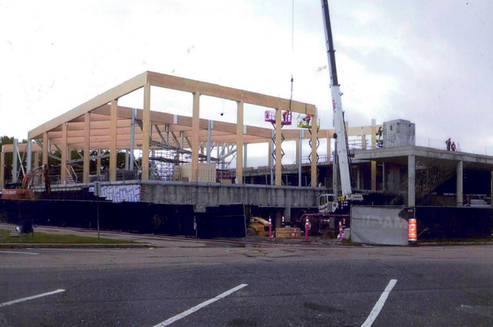 2.Voici la charpente du futur complexe aquatique qui remplacera la piscine Laurier – Ménard en 2027.