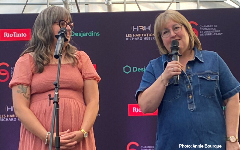 Anna Capobianco travailleuse autonomes spécialisée dans les cours d’anglais sur mesure et Jean-François Dufault, directeur des opérations chez Machinex qui a vanté la cinquantaine d’employés sorelois, embauchés ce printemps. «Des gens fiables, engagés et de qualité. Une fierté pour nous.»