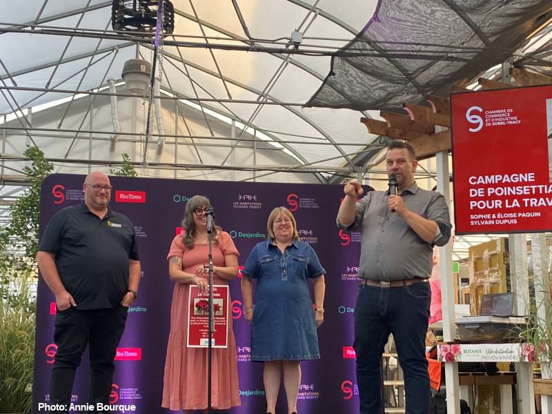 À la fin de l’événement, un bel élan de solidarité s’est manifesté spontanément. Les mains des entrepreneurs se sont spontanément levées afin de se procurer une magnifique plante rouge, le poinsettia qui orne nos tables dans le temps des fêtes. L’École de conduite Bouvier en a demandé 70 plantes et Portes et Fenêtres Boulet en a pris 100 ! L’an dernier, la vente de 333 poinsettias a permis de recueillir la somme de 2100 $ qui a été remis à l’organisme.